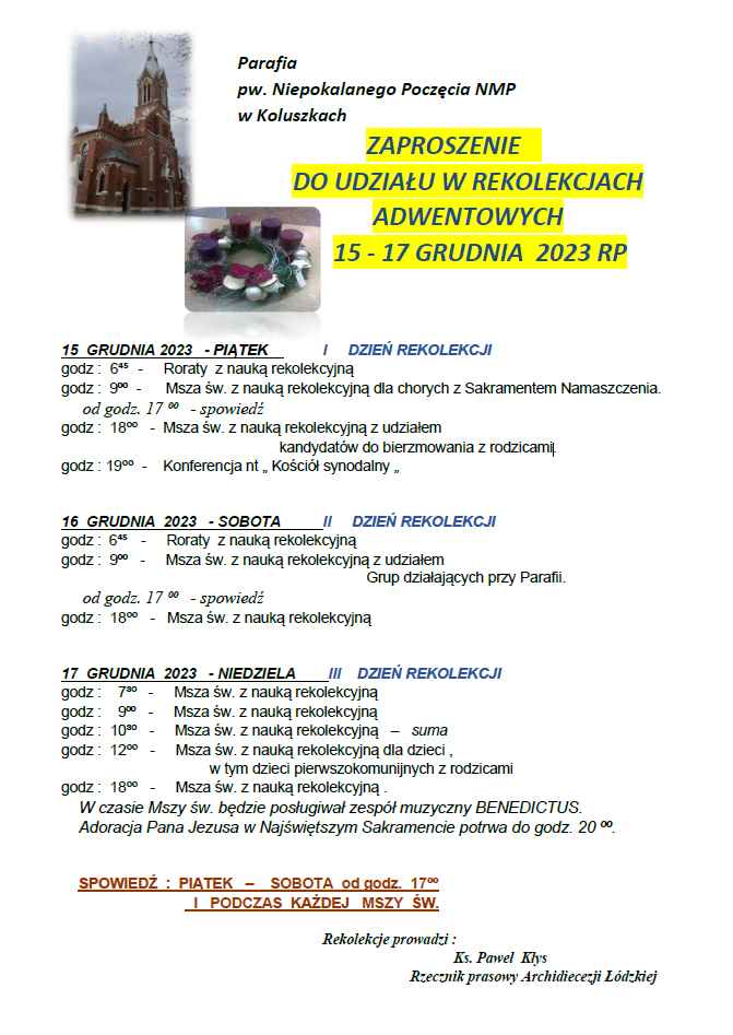 Rekolekcje adwentowe 2023 aktualnosci / michalkol-admin Rekolekcje adwentowe 2023 Rekolekcje adwentowe 2023 Read More »